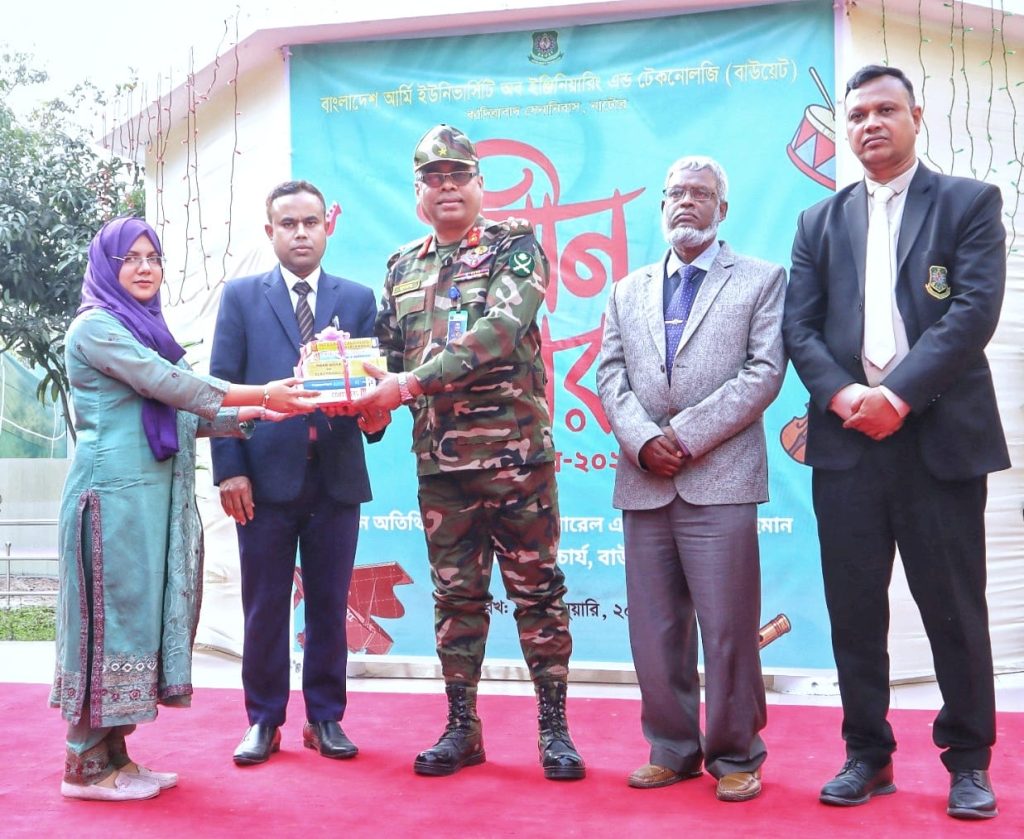 নাটোরের বাংলাদেশ আর্মি ইউনিভার্সিটি অব ইঞ্জিনিয়ারিং এন্ড টেকনোলজি (বাউয়েট) ক্যাম্পাসে উইন্টার—২০২৫ সেমিস্টারের ভর্তিকৃত নবাগত শিক্ষার্থীদের নবীনবরণ অনুষ্ঠিত হয়। গত বুধবার (২৮ জানুয়ারি ২০২৬) আয়োজিত অনুষ্ঠানে প্রধান অতিথি হিসেবে উপস্থিত ছিলেন বিশ্ববিদ্যলয়ের মাননীয় উপাচার্য ব্রিগেডিয়ার জেনারেল এস এম লুৎফর রহমান।