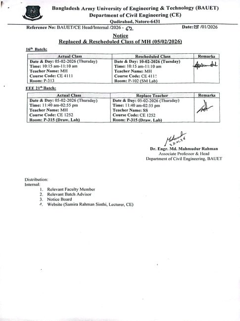 info@bauet.ac.bd +8801708503510 (Deputy Registrar, Acad)