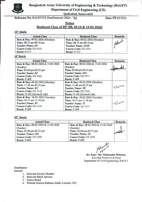 info@bauet.ac.bd +8801708503510 (Deputy Registrar, Acad)