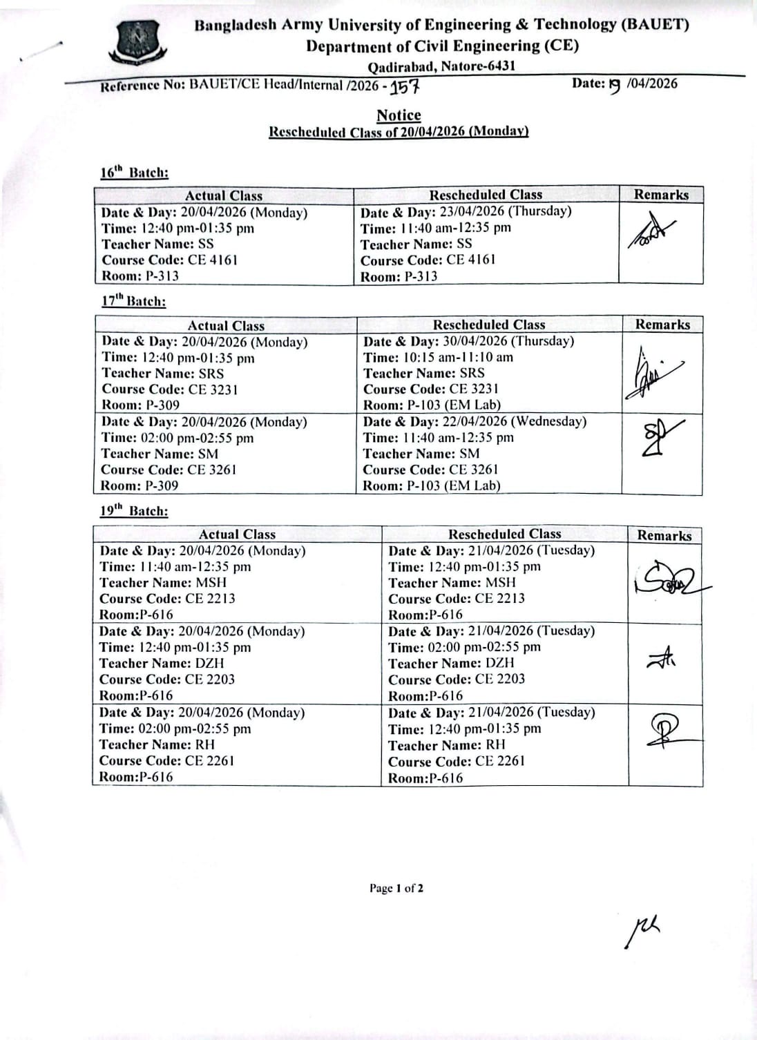 Rescheduled Classes of 30.03.2026 and 06.04.26