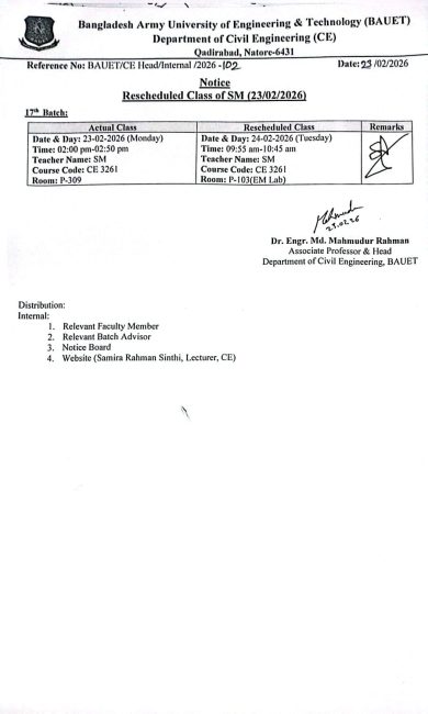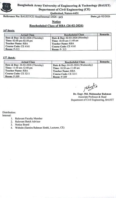 info@bauet.ac.bd +8801708503510 (Deputy Registrar, Acad)