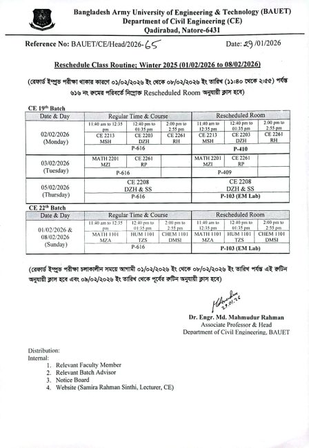 Rescheduled Class Routine of 28.01.2026