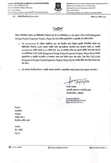 info@bauet.ac.bd +8801708503510 (Deputy Registrar, Acad)