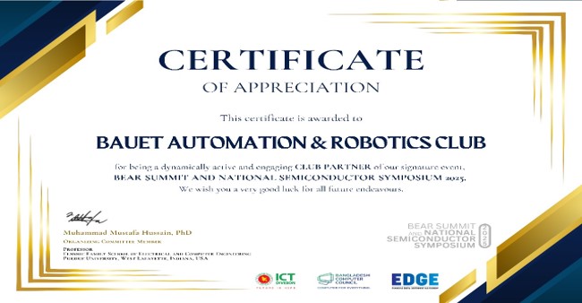 BAUET Automation & Robotics Club (BARC) is focusing on the student’s enthusiasm in the field of robotics. Automation is preferable to many students in the engineering field. The hands-on experience helps the students to become familiar with the research and development sector. Targeting to keep pace with the current technological advancement, BAUET Automation & Robotics Club (BARC) is considered a vital factor in this regard. BARC frequently arranges project fairs, and competitions in different categories like hardware and software-based projects, online seminars, webinars, web design-based projects, and poster design & idea carnivals to enhance the practical hand and the theoretical concepts of the students.