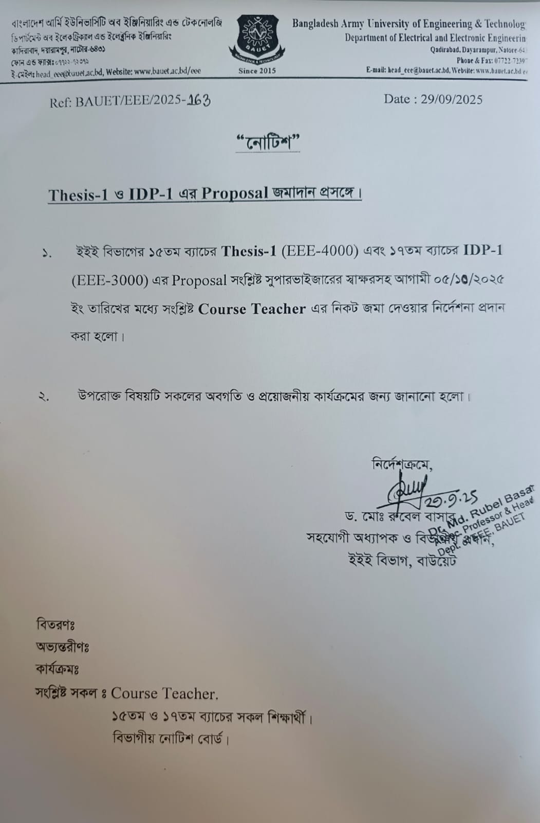 Notice for IDP-I Supervisor Allocation (EEE 16th Batch)