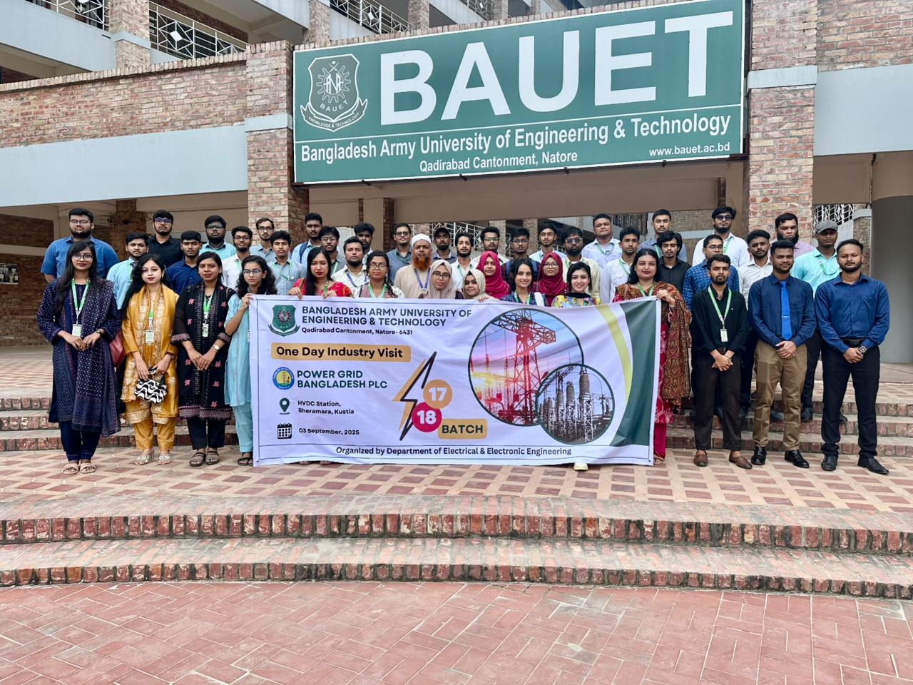 The students of the EEE 17th and 18th batches from BAUET conducted an academic visit to the HVDC Bheramara Substation (a high-voltage direct-current back-to-back link) operated by Power Grid Bangladesh PLC. During the visit, they gained firsthand exposure to advanced power transmission technologies, grid interconnection techniques, and system operations, thereby enriching their theoretical studies with practical, real-world power engineering insights.