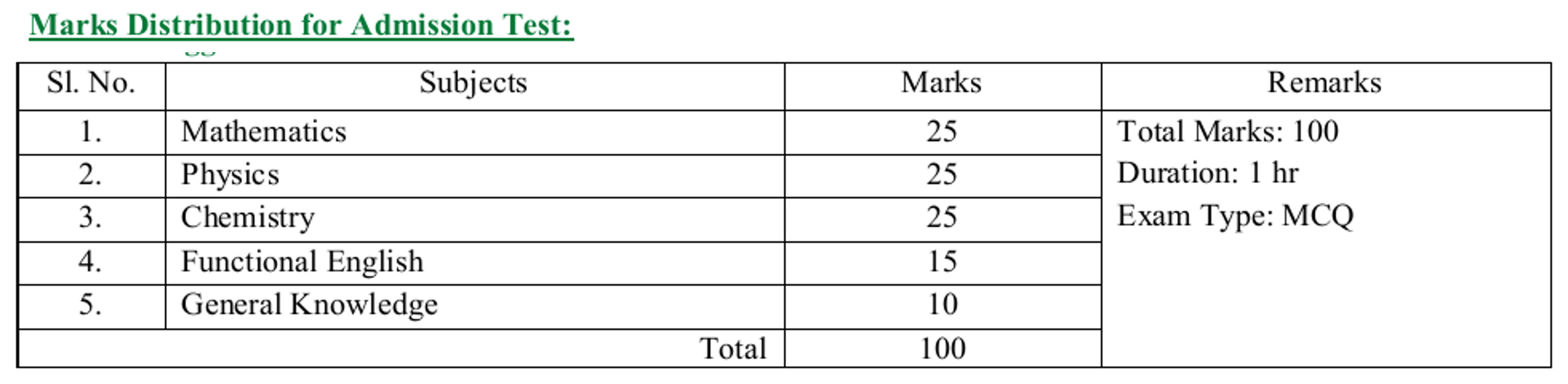 - Admission Test: 09th Jan, 2026