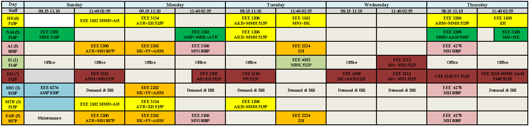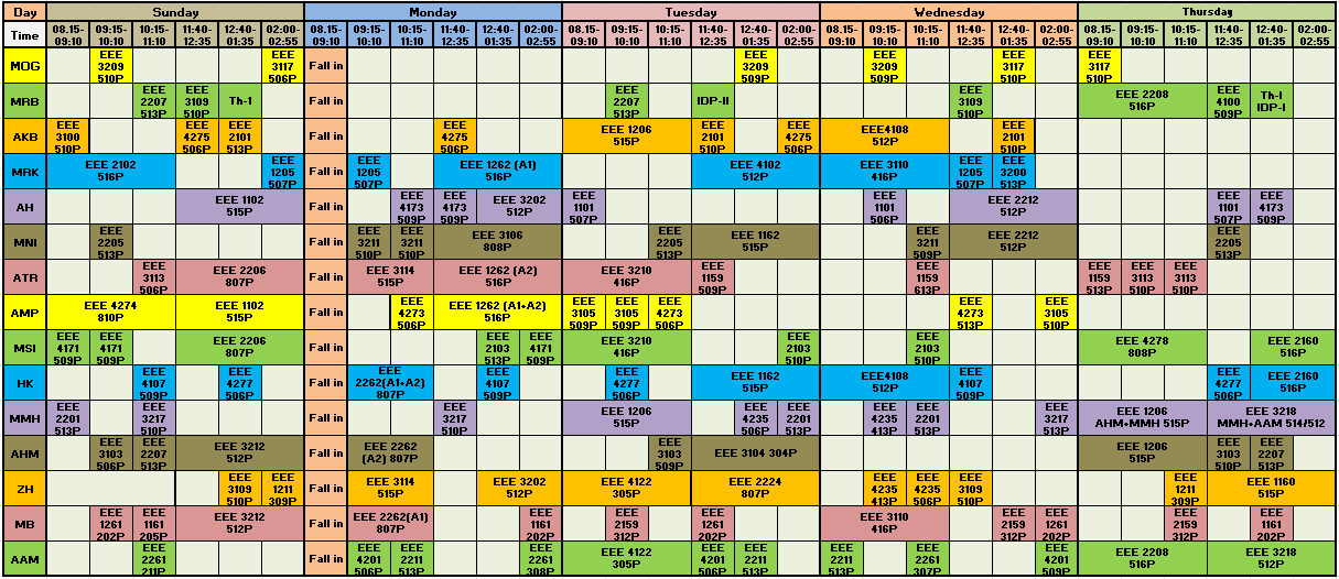| Monday | EEE-510 (30) EEE-507 (60) EEE-5013(30) |
