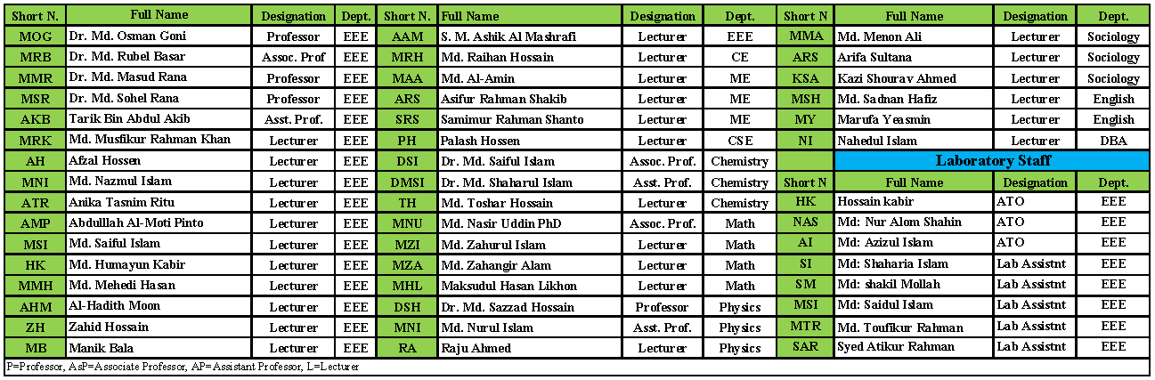 ***Short and Full Name of Faculty and Staffs***