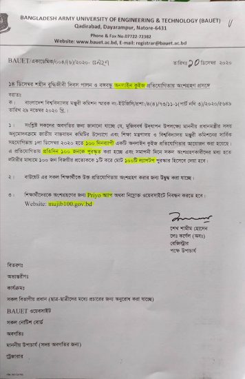 info@bauet.ac.bd +8801708503510 (Deputy Registrar, Acad)