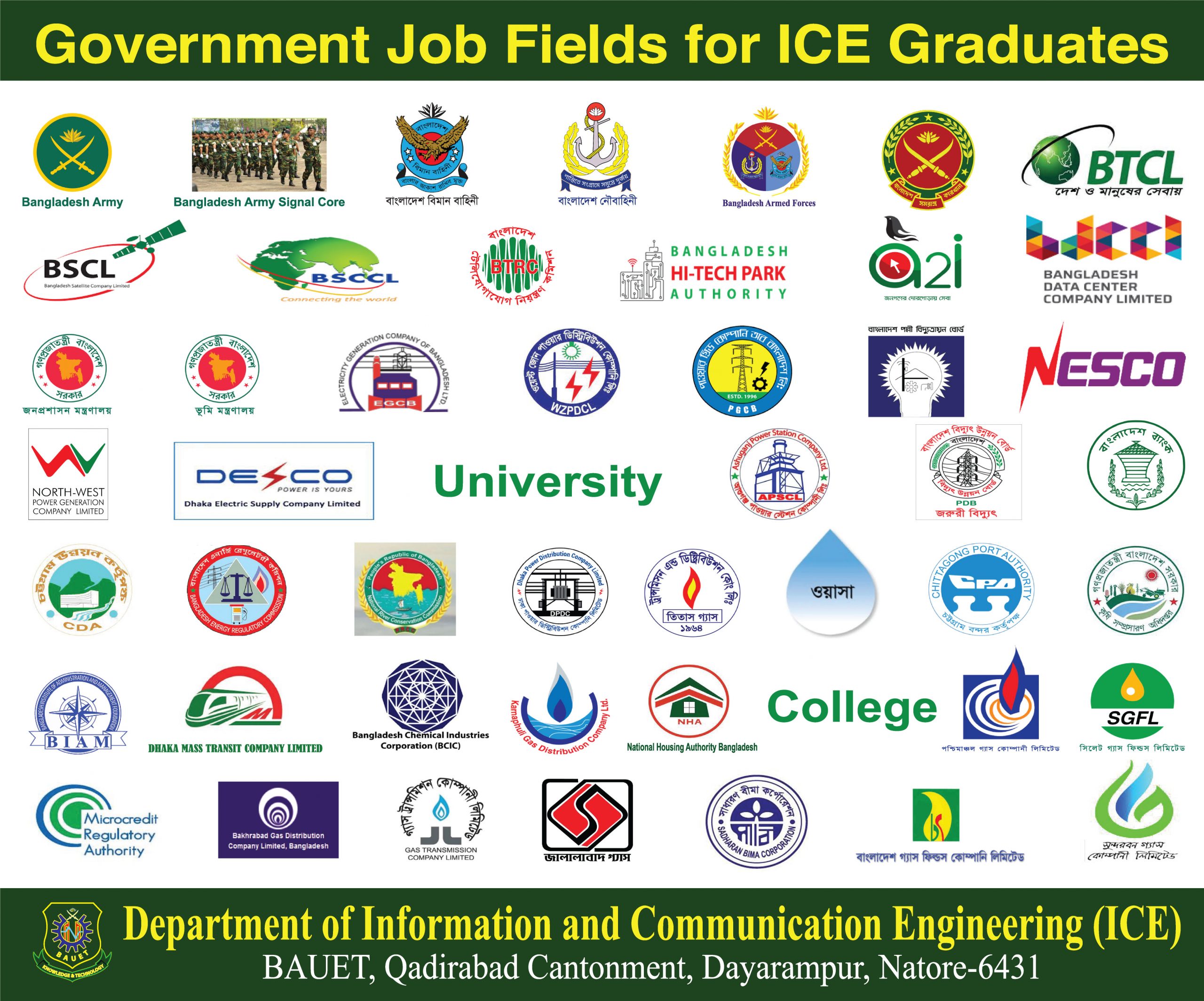 The Department of Information and Communication Engineering (ICE) of the Bangladesh Army University of Engineering and Technology (BAUET) started its academic activities in March 2016 and currently offers a Bachelor of Science in engineering program. Through the program, the department provides high-quality education, planning, design and implementation of both theoretical and practical knowledge in the field of information technology and communication engineering. Since its inception, the Department is playing a vibrant role in producing skilled ICT engineer in international standards.