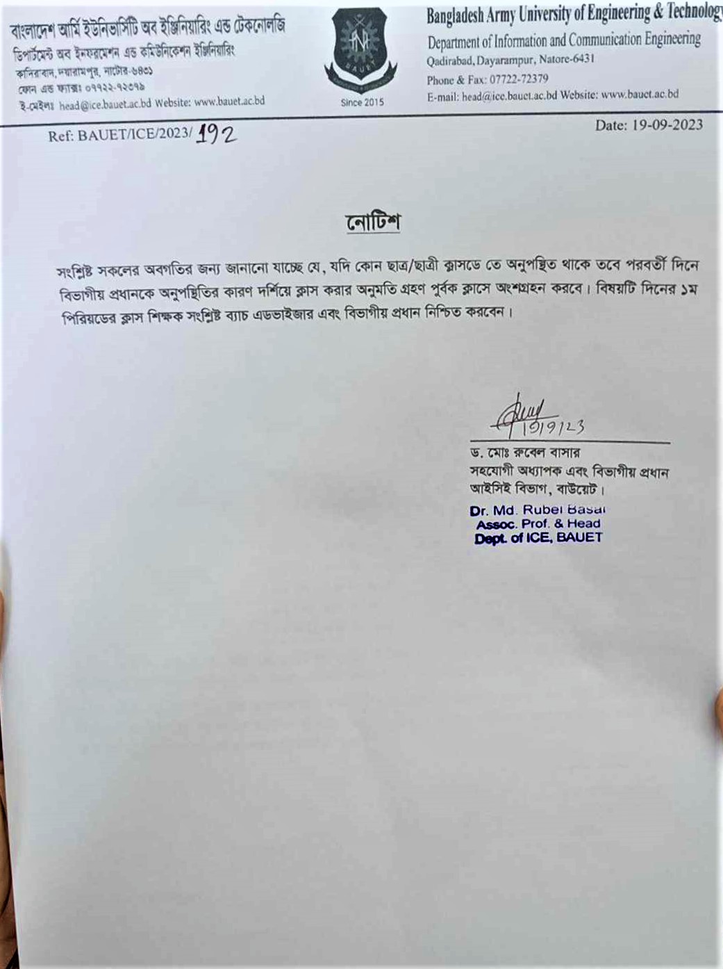 info@bauet.ac.bd +8801708503510 (Deputy Registrar, Acad)