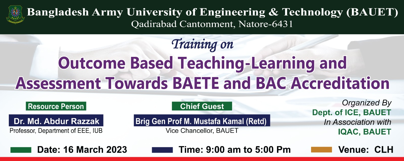 info@bauet.ac.bd +8801708503510 (Deputy Registrar, Acad)